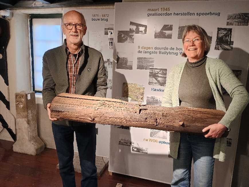 Afgelopen week ontving Anke Sonnemans, voorzitter van museum het Petershuis uit handen van Jos Ballast een unieke spoorbiels: het enige overgebleven exemplaar van de Hawkins Link. Deze link of lus in goed Nederlands maakte deel uit van een tijdelijke militaire spoorverbinding die in het voorjaar van 1945 tussen Wijchen en Hommersum werd aangelegd door de Britse geallieerden en aansloot op het Duits lijntje.